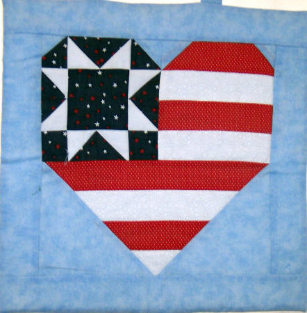 Flag Heart constructed using 100% cotton fabrics machine pieced and machine quilted by Linda Monasky <br />
